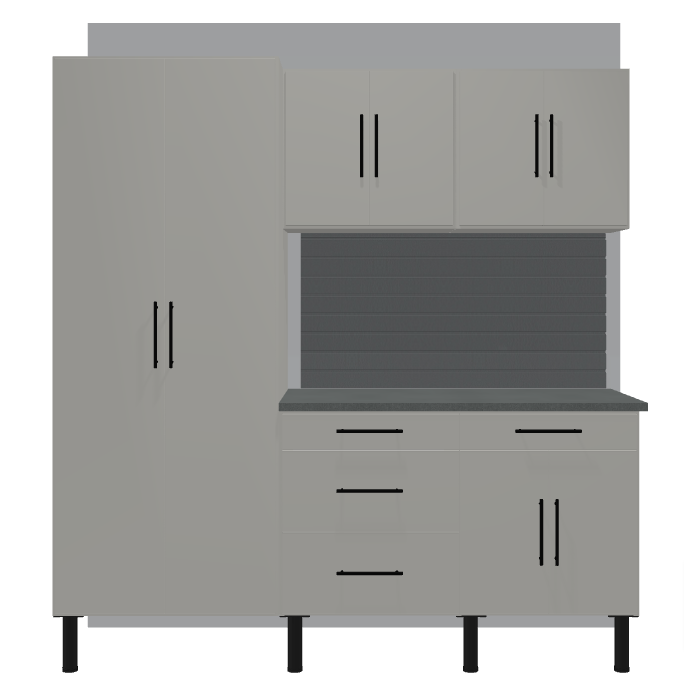 The 84" Wide Slate Garage Kit is a predesigned set up to help your garage stay organized and functional! This kit includes everything you need to complete the installation. Please note, that a customized solution can be created by contacting our Closet Design Department!
