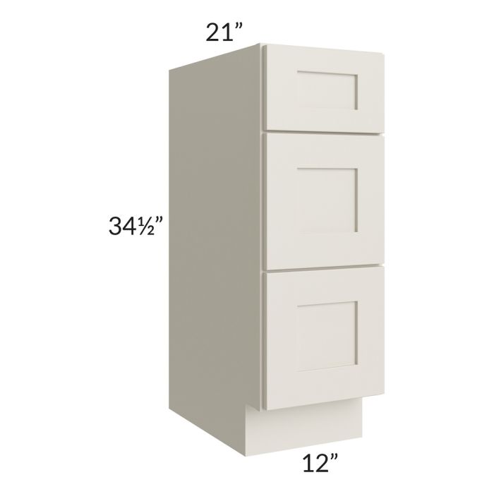 Asheville Cloud Shaker 12" 3-Drawer Vanity Base Cabinet