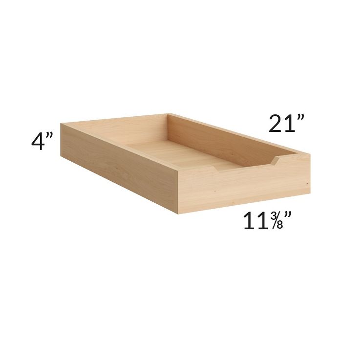Roll out tray to be used with a 15" wide base cabinet. The roll out tray is full extension and will come with the mounting hardware and soft closing glides. *Please note this roll out tray will only work with this collection and will have a natural finish*