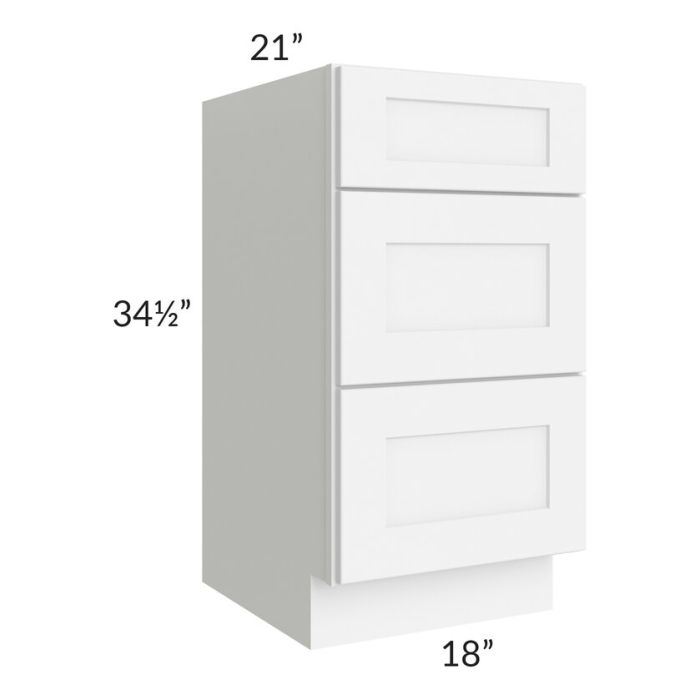 Brilliant White Shaker 18" 3-Drawer Vanity Base Cabinet