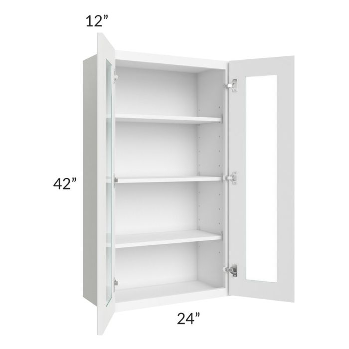 Brilliant White Shaker 24x42 Wall Glass Door Cabinet (Prepped for Glass Doors)