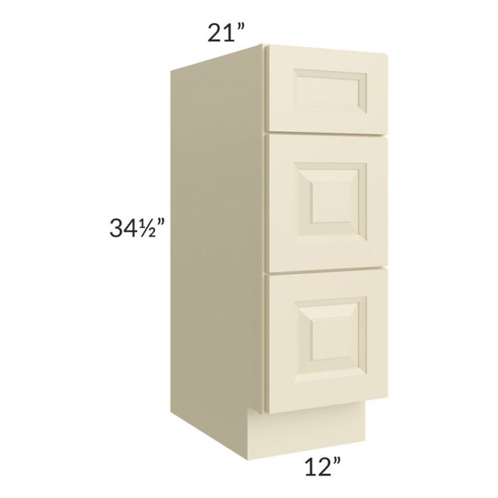 Casselton Ivory 12" Vanity 3-Drawer Base Cabinet