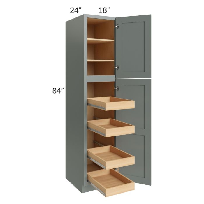 Catalina Meadow Green 18x84x24 Wall Pantry Cabinet with 4 Rollout Trays - Low stock through March