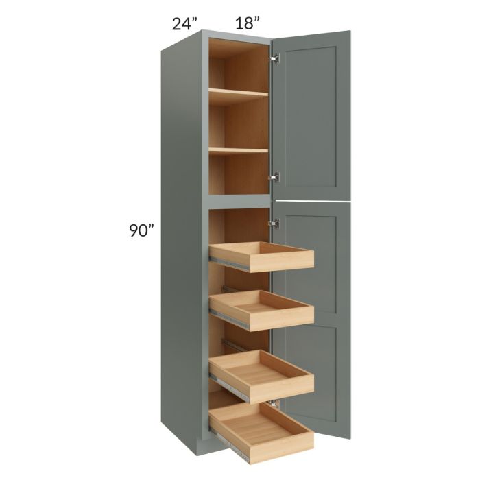 Catalina Meadow Green 18x90x24 Wall Pantry Cabinet with 4 Rollout Trays - Low stock through March