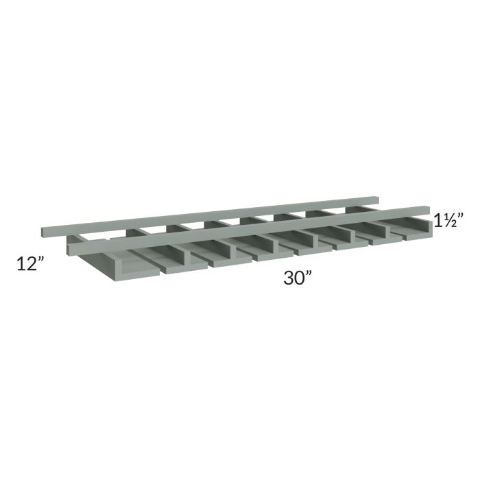 Stem glass holder that is commonly installed under a wine rack, plate rack or other wall cabinet.