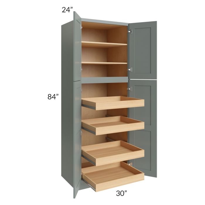 Catalina Meadow Green 30x84x24 Wall Pantry Cabinet with 4 Rollout Trays