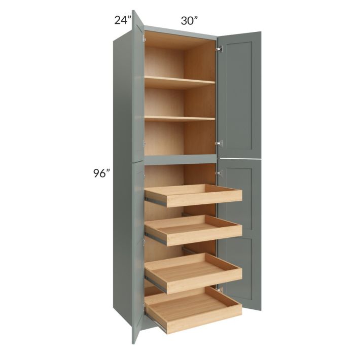 Catalina Meadow Green 30x96x24 Wall Pantry Cabinet with 4 Rollout Trays
