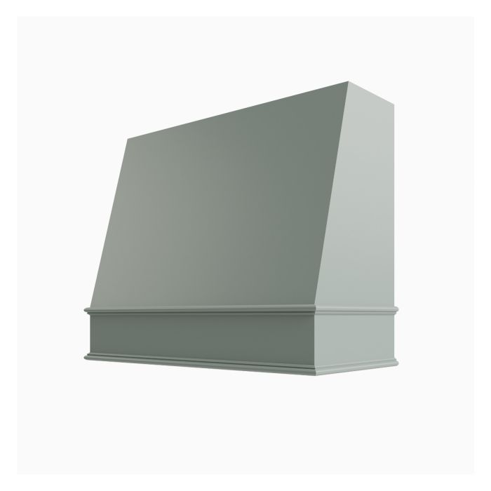 Smooth, angled hood with classic molding. Features a plywood and Maple construction. The hood base front panel is 42" but at the widest point with the molding, the total width is 43-1/2". The side panel is 19-1/2" deep, and 20-1/4" deep with the molding. The top of the chimney is 42" wide and 14-1/2" deep and the chimney section is trimmable by 6" to make the total height 30", if needed. The height of the panel and molding section on bottom is 8-1/4". The hood has a two-piece construction for easy mounting and access to fan and ducting. Ships assembled.