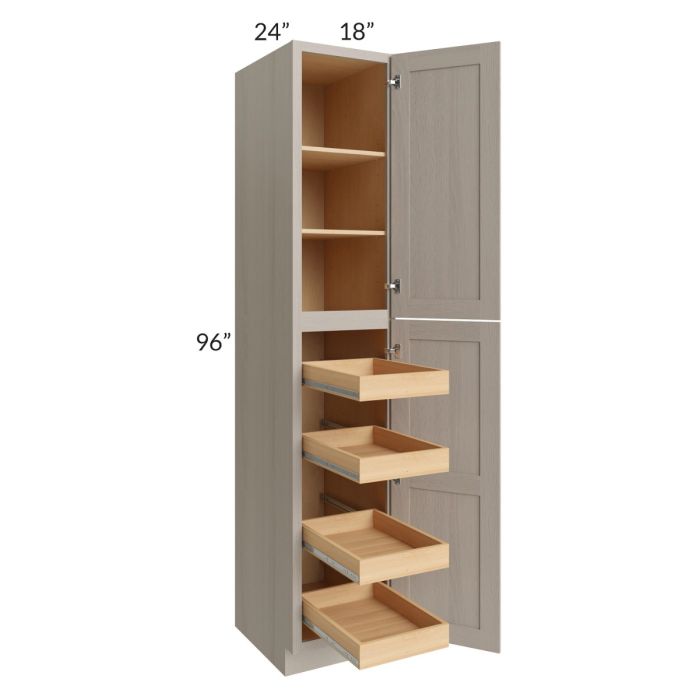 Description / Catalina Mist 18x96x24 Wall Pantry Cabinet with 4 Rollout Trays