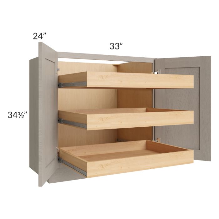 Catalina Mist 33" Full Height Base Cabinet with 3 Rollout Trays