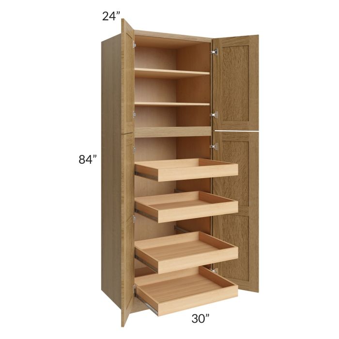 Catalina Toffee 30x84x24 Wall Pantry Cabinet with 4 Rollout Trays