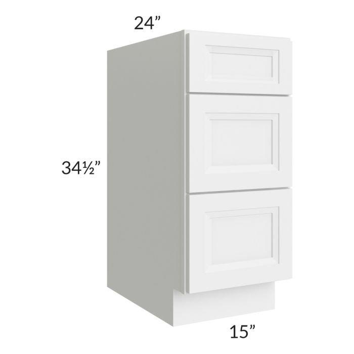 Description / Catalina White 15" 3-Drawer Base Cabinet