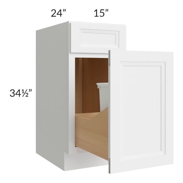 Catalina White 15" Base Cabinet with Single Trashcan Pullout
