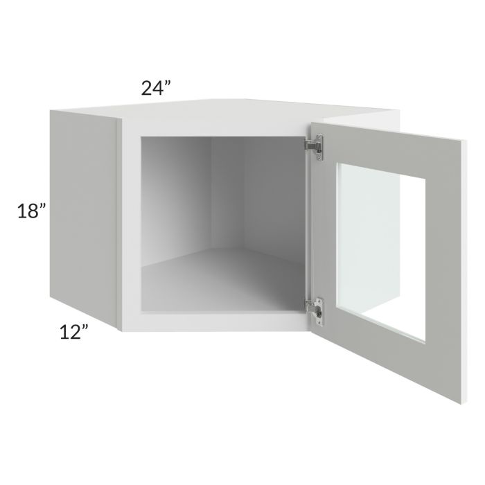 Decorative wall diagonal corner cabinet. The door will be routed for glass and the interior will be finished. This cabinet is meant to be stacked on top of or used with a 24" wall diagonal corner cabinet. **Glass is not included**