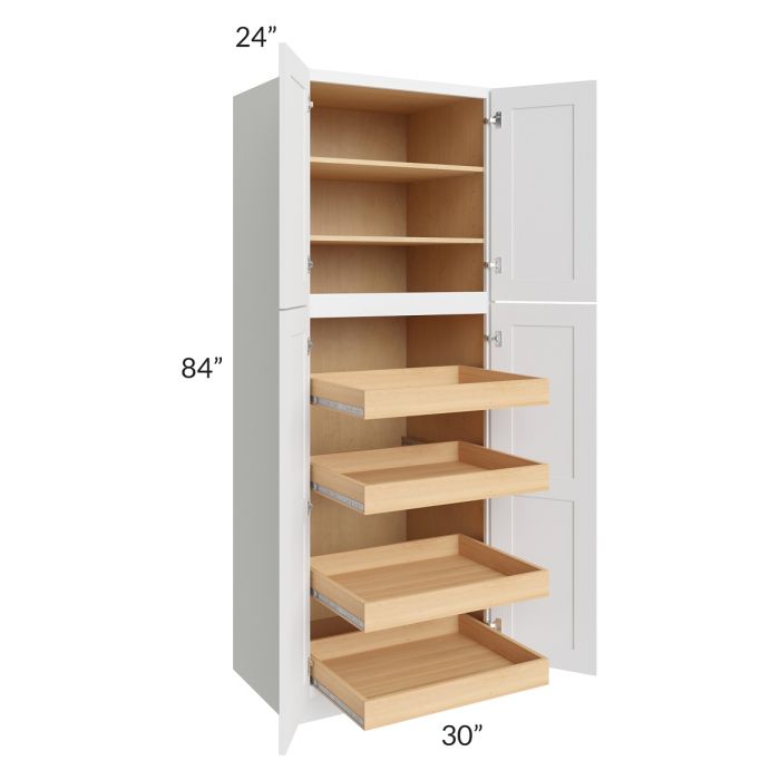 Catalina White 30x84x24 Wall Pantry Cabinet with 4 Rollout Trays