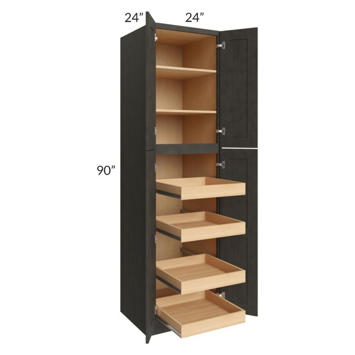 Charcoal Grey Shaker 24x90x24 Wall Pantry Cabinet with 4 Rollout Trays