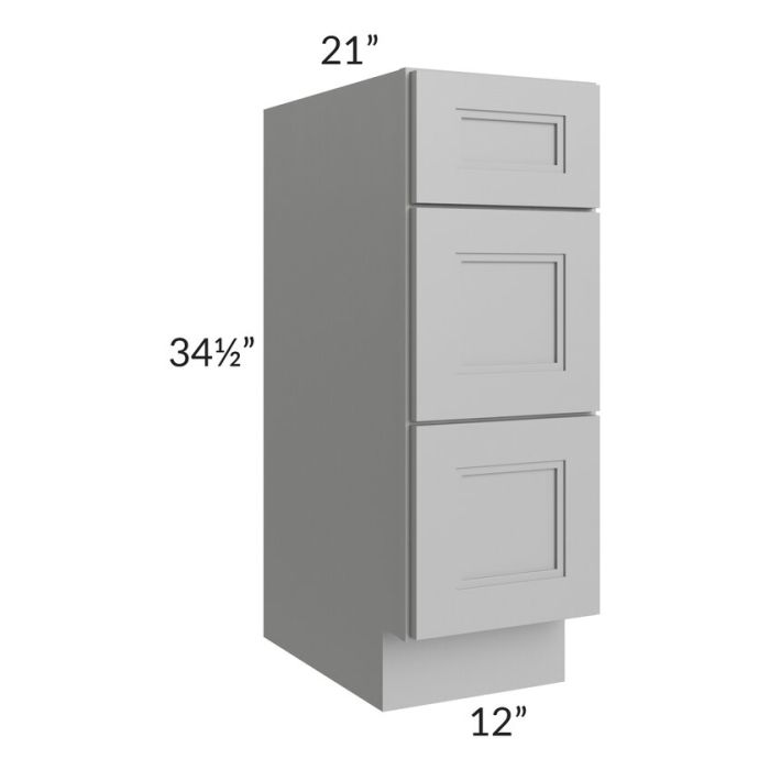 Charlotte Grey 12" Vanity 3-Drawer Base Cabinet