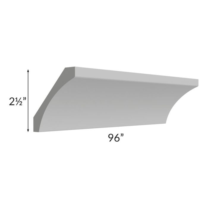 Cove crown molding. This crown will not have any 'heel' to attach the crown to the top of cabinetry, so it's better suited when attaching directly to the wall or ceiling. When being used on the top of wall cabinets, the Cove Crown Molding (ACM8-C) will work better since it does have a 'heel' on the bottom of the crown.