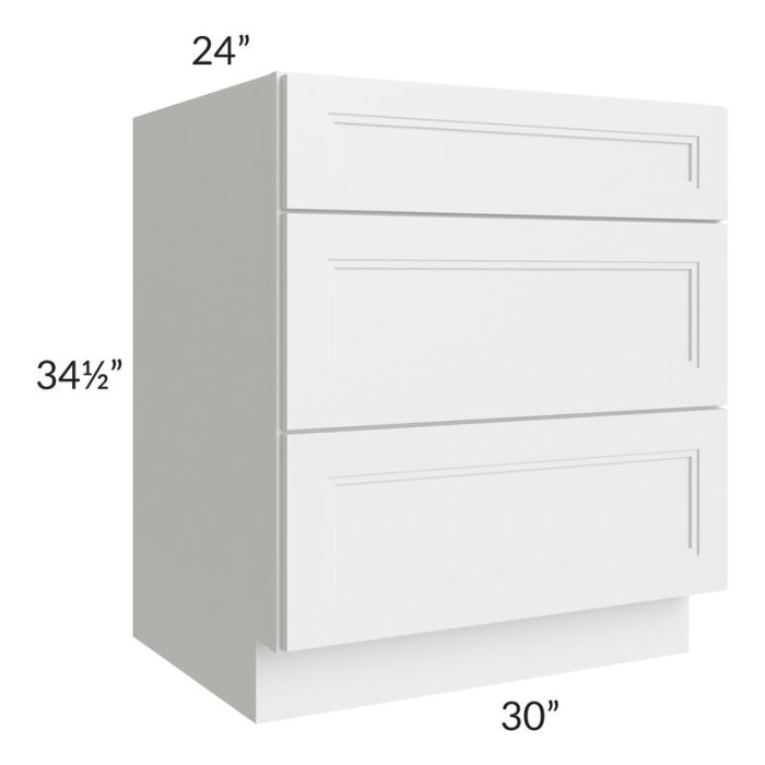 Charlotte White 30" 3-Drawer Base Cabinet