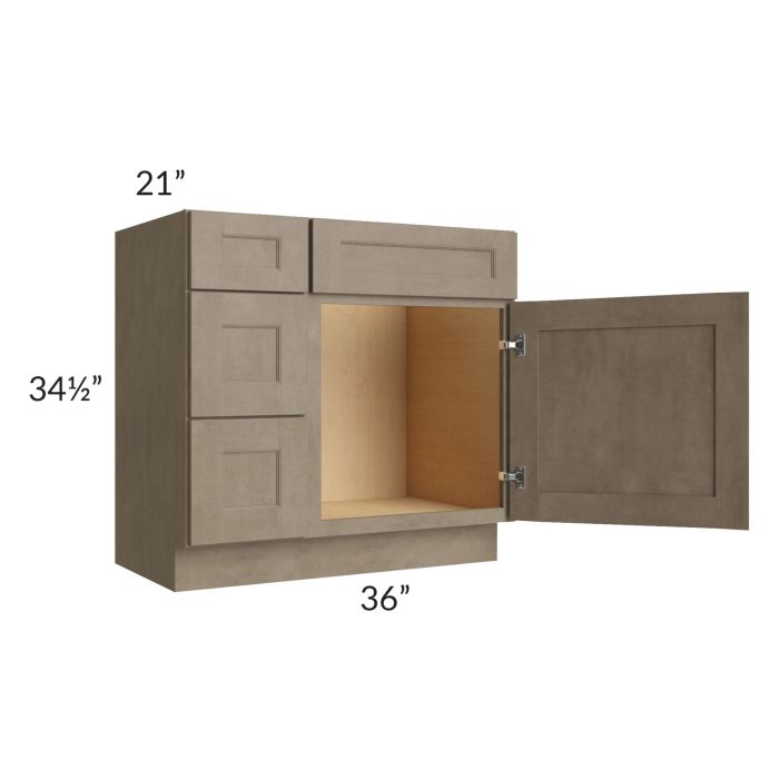 Cobblestone Grey 36" Vanity Sink Base Cabinet (Drawers on Left) - Out of stock through May