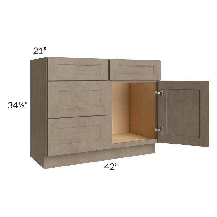 Cobblestone Grey 42" Vanity Sink Base Cabinet (Drawers on Left)