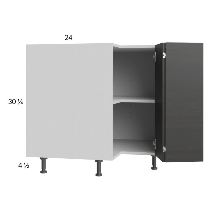 Easy reach corner cabinet with a bi-fold door that takes up 33" of wall space from the corner out, on each wall. This cabinet has 1 adjustable wood shelf.
