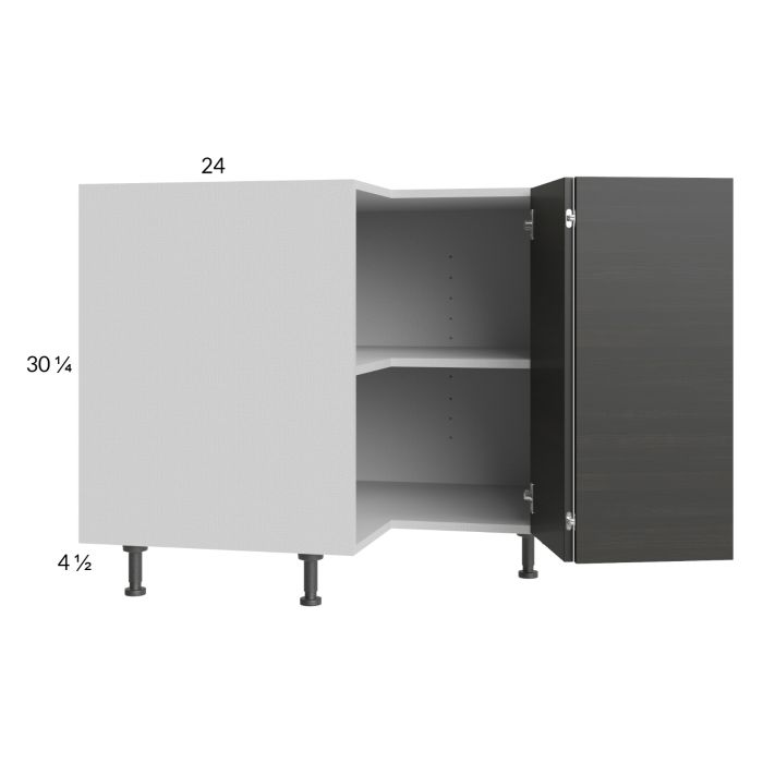 Easy reach corner cabinet with a bi-fold door that takes up 36" of wall space from the corner out, on each wall. This cabinet has 2 adjustable wood shelves. Finished end panels are required for exposed sides.