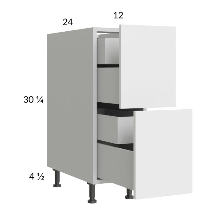 Euro Gloss White 12" 2-Drawer Base Cabinet with 2 Inner Drawers