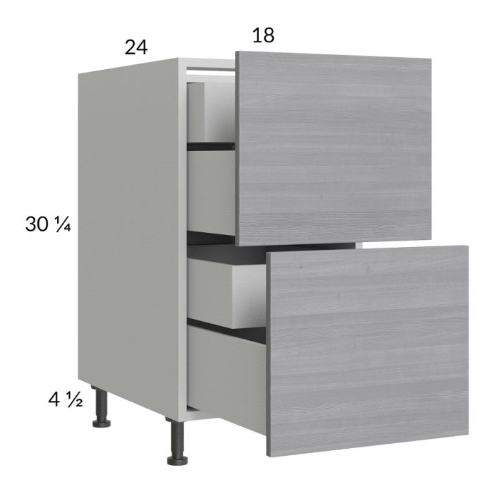 Euro Grey 18" 2-Drawer Base Cabinet with 2 Inner Drawers