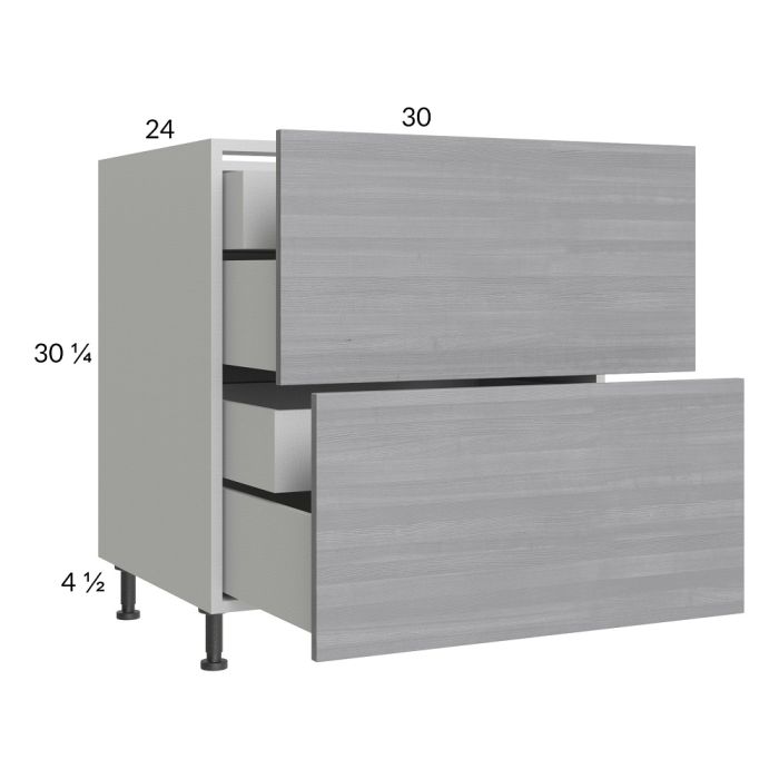 Euro Grey 30" 2-Drawer Base Cabinet with 2 Inner Drawers