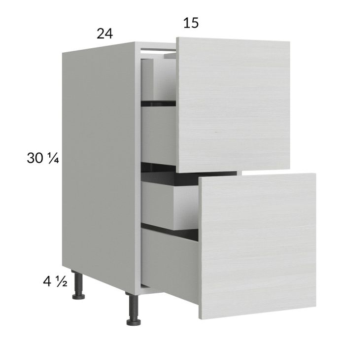 Euro White Grain 15" 2-Drawer Base Cabinet with 2 Inner Drawers