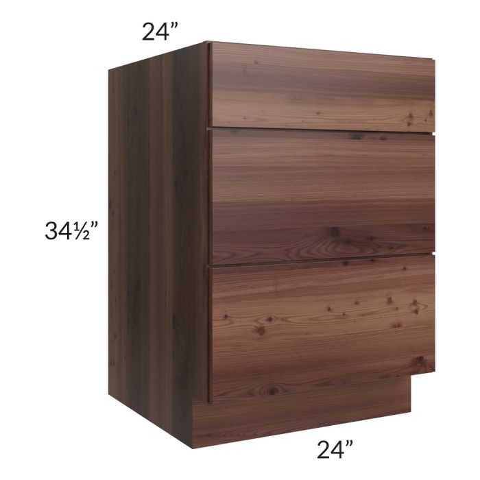 Farmhouse Walnut Shaker 24" 3-Drawer Base Cabinet