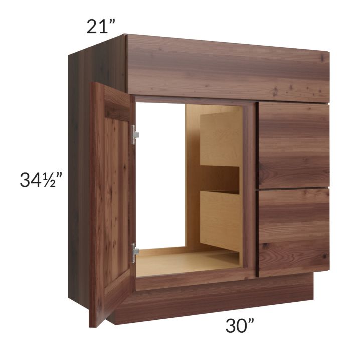 Farmhouse Walnut Shaker 30" Vanity Sink Base Cabinet with Drawers on the Right