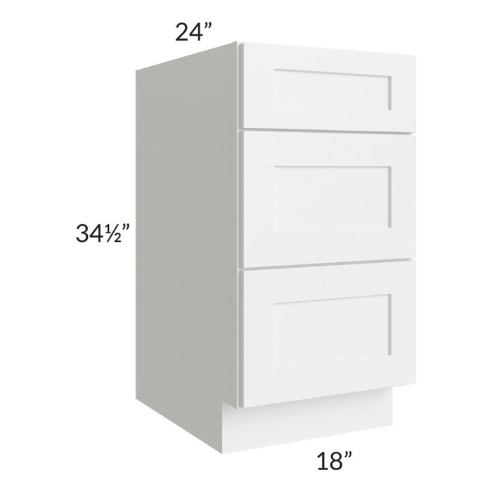 Frosted White Shaker 18" 3-Drawer Base Cabinet
