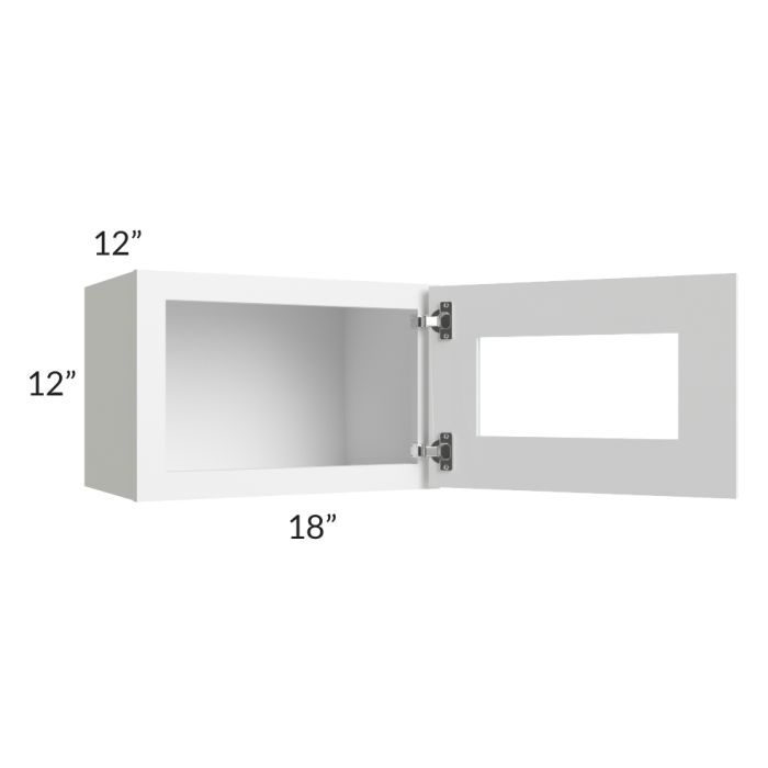 Description / Frosted White Shaker 18x12 Decorative Wall Cabinet with Plain Glass