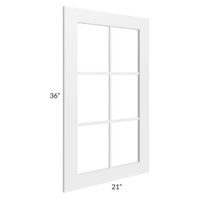 Mullion glass door for a 21"W x 36"H wall cabinet that will match the door style of the cabinet and has 6 panes. The glass is also included.