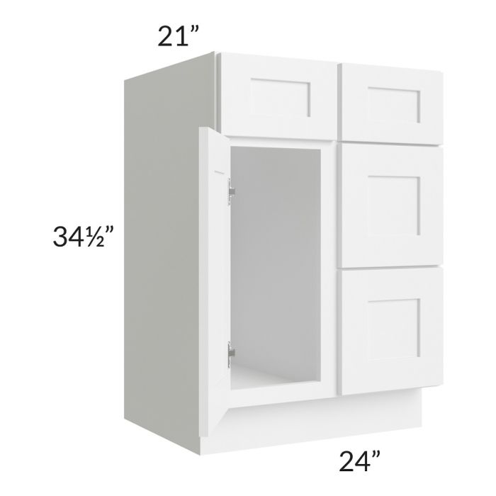 Frosted White Shaker 24" Vanity Sink Base Cabinet (Drawers on Right)
