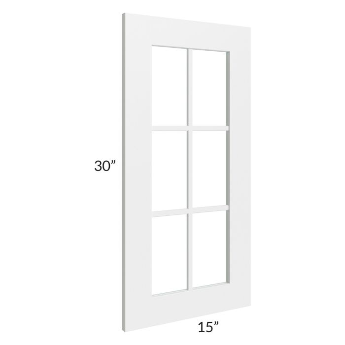 Mullion glass door for a 24"W x 30"H diagonal corner wall cabinet that will match the door style of the cabinet and has 6 panes. The glass is also included.