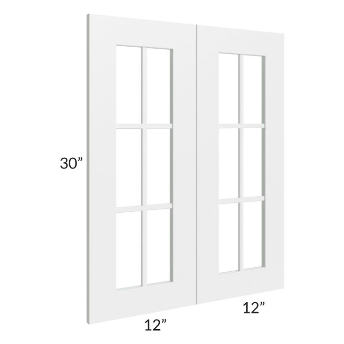 Set of mullion glass doors for a 24"W x 30"H wall cabinet that will match the door style of the cabinet and has 6 panes. The glass is also included.
