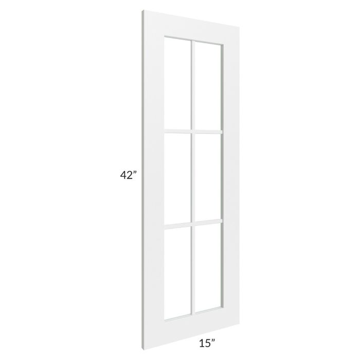 Mullion glass door for a 24"W x 42"H diagonal corner wall cabinet that will match the door style of the cabinet and has 8 panes. The glass is also included.
