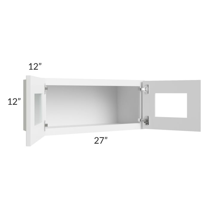 Frosted White Shaker 27x12 Decorative Wall Cabinet with Plain Glass