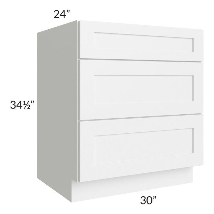 Frosted White Shaker 30" 3-Drawer Base Cabinet