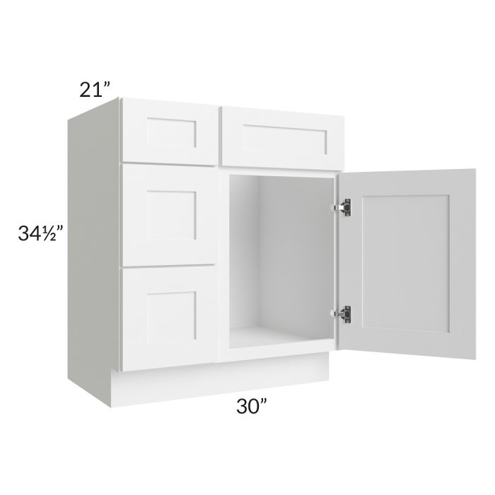 Frosted White Shaker 30" Vanity Sink Base Cabinet (Drawers on Left)