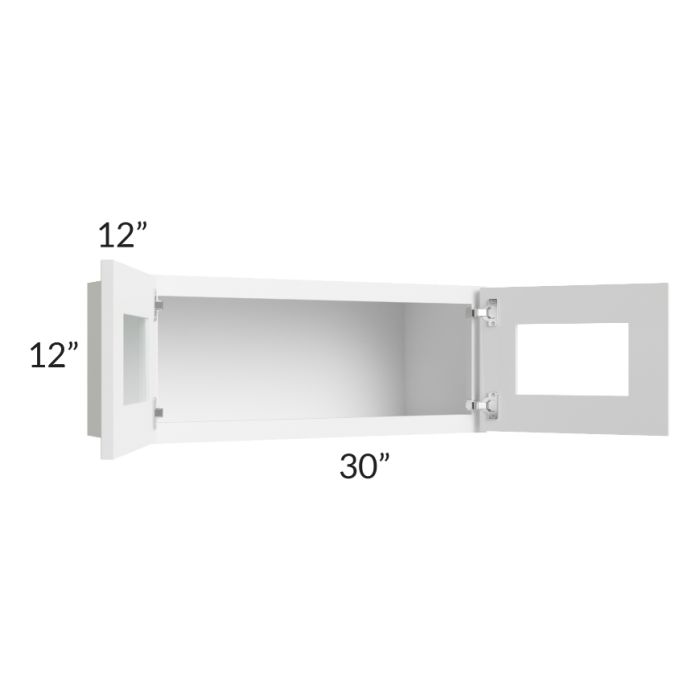 Frosted White Shaker 30x12 Decorative Wall Cabinet with Plain Glass