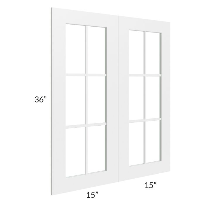 Set of mullion glass doors for a 30"W x 36"H wall cabinet that will match the door style of the cabinet and has 6 panes. The glass is also included.