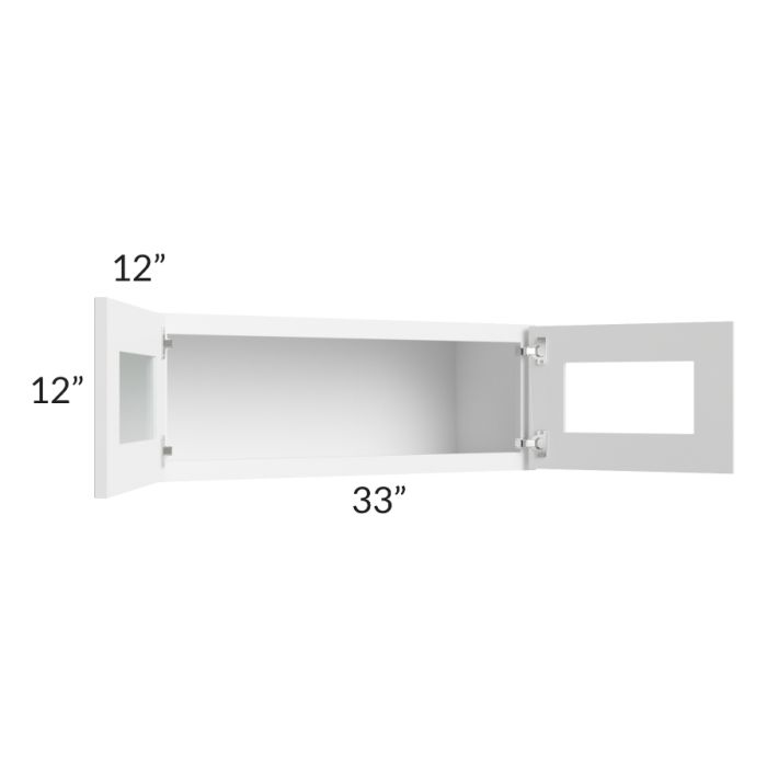 Description / Frosted White Shaker 33x12 Decorative Wall Cabinet with Plain Glass
