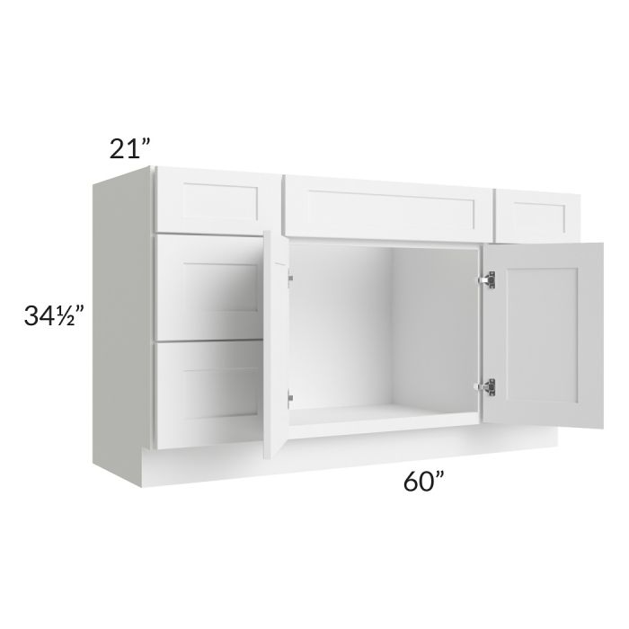 Frosted White Shaker 60" Vanity Sink Base Cabinet with Drawers