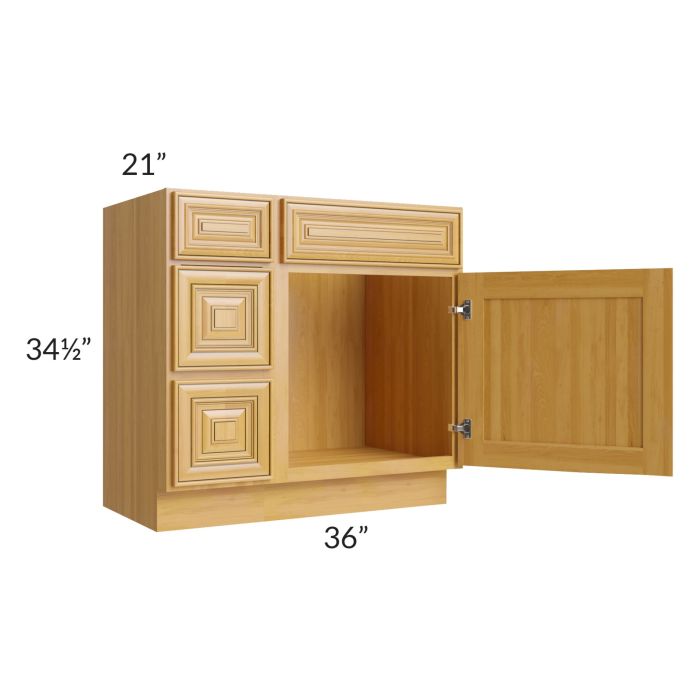 Glazed Praline 36" Vanity Sink Base Cabinet (Drawers on Left)