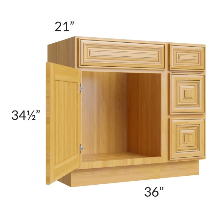Glazed Praline 36" Vanity Sink Base Cabinet (Drawers on Right)
