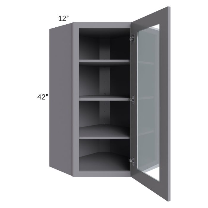Graphite Grey Shaker 24x42 Wall Diagonal Corner Cabinet (Prepped for Glass Doors)